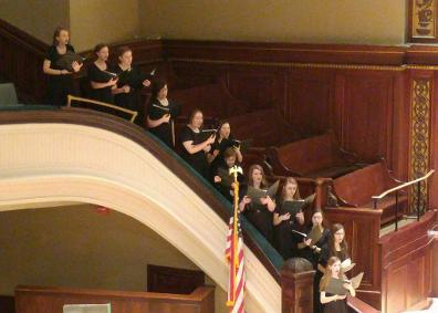 Congratulations to Kate McAuliffe! (She is wearing the blue scarf.) Kate is the first Amadeus Chorale singer to be a member for eleven years. She began as a seven-year-old second grade singer and graduated as an eighteen-year-old high school senior. She went on to graduate from Crane School of Music with a degree in Composition.