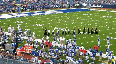 Leaving the field after singing "The Star-Spangled Banner" at an NFL Buffalo Bills Game