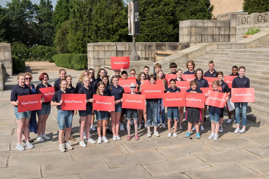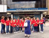We were on the steps of the Museum of Art in Philadelphia (the famous Rocky Steps), when the employees were filming a news blip for Channel 6 news about their Save the Arts program. We sang for them, they gave us their signs, and their Director of Retail, James A. Cincotta took this photo for us!